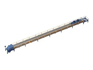 Особенностью данного решения является оснащение конвейера деталями и узлами соприкасающихся с материалом из нержавеющей стали, в том числе лоток загрузочный закрытый с двумя патрубками загрузки и одним патрубком под аспирацию, также конвейер оснащен весами конвейерными для взвешивания пройденного материала.